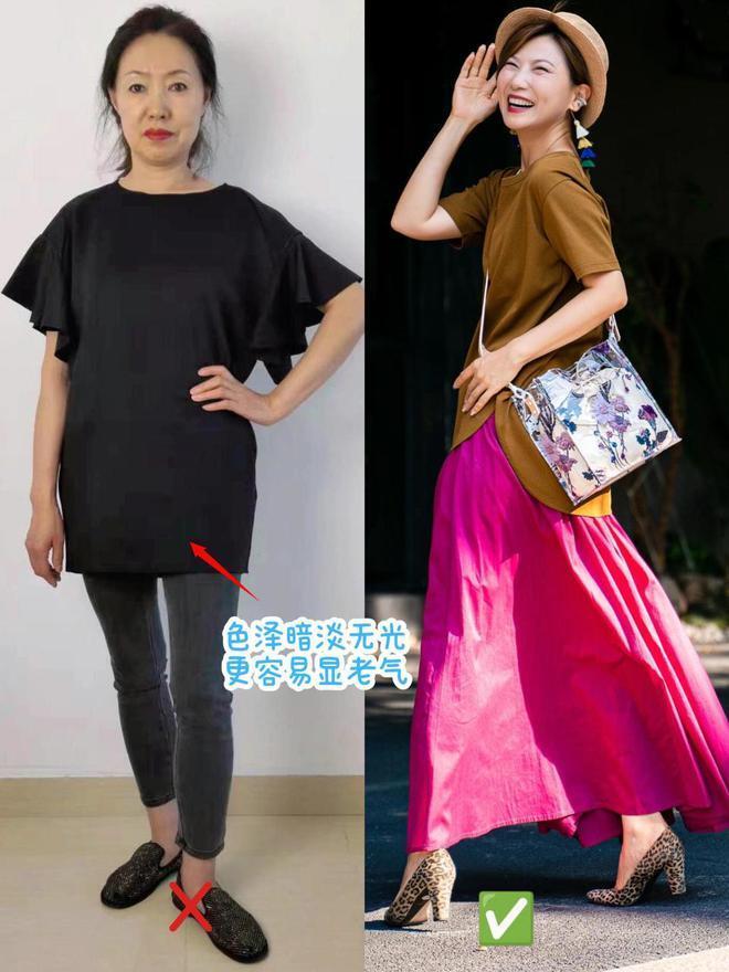 ②黑白灰颜色太单一,穿富贵色更减龄