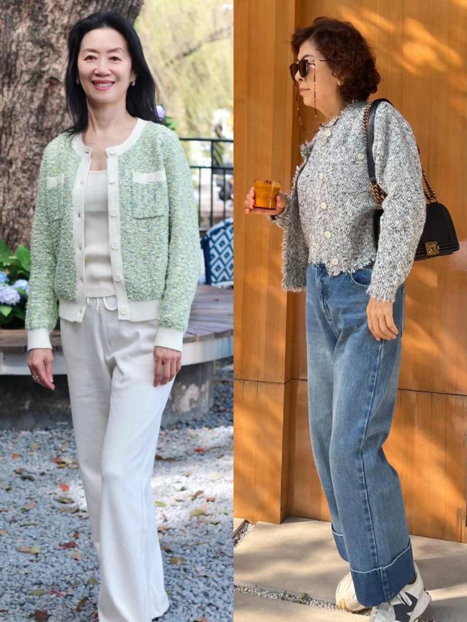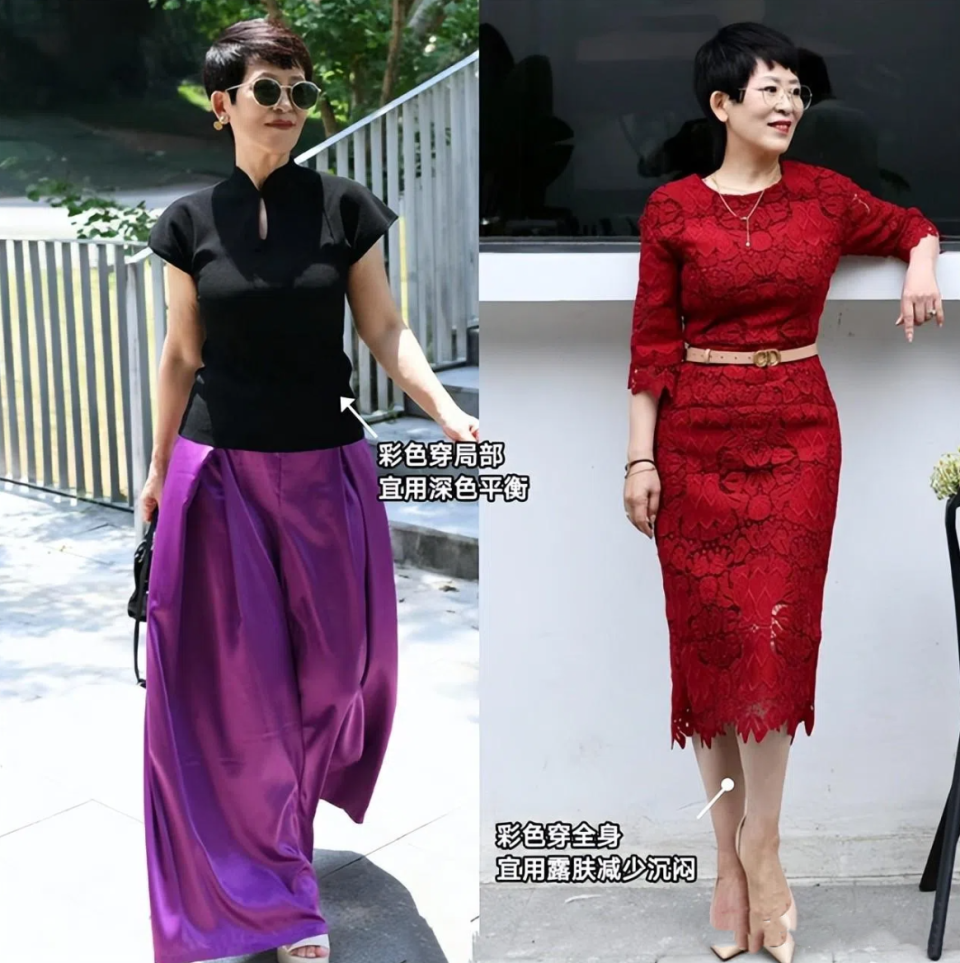 像很多中年女人的衣橱中往往只有黑白灰这三种颜色,实际上五六十岁以后的女人想要展现时尚感,在色彩搭配这方面还可以做出一些挑战。