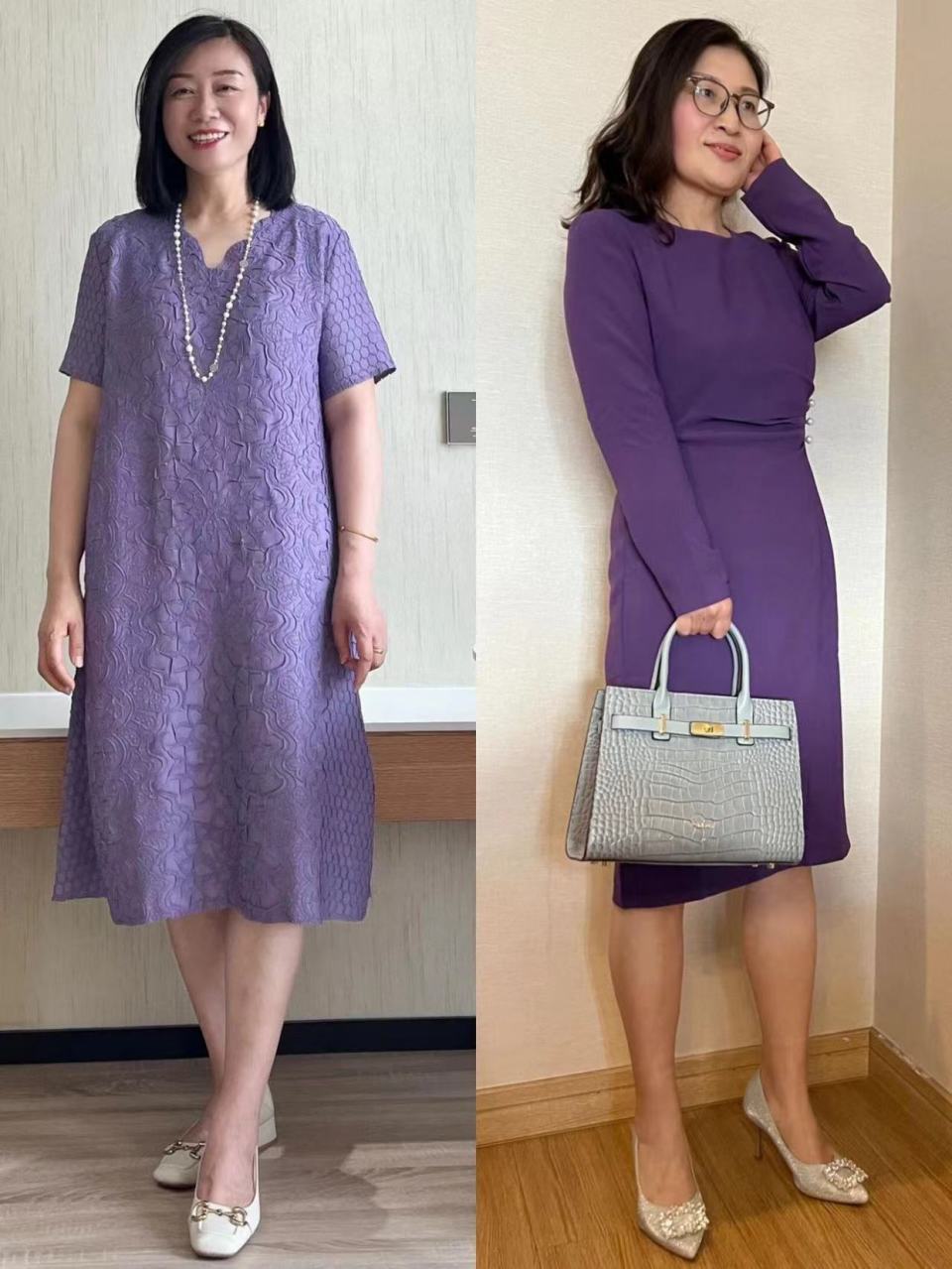 紫色系的色调不同,呈现出来的色感也不同。一般女性穿搭中的紫色调都是清澈的紫色系,较为暗色调的紫色适合中老年女士,有一种高贵成熟的感觉。