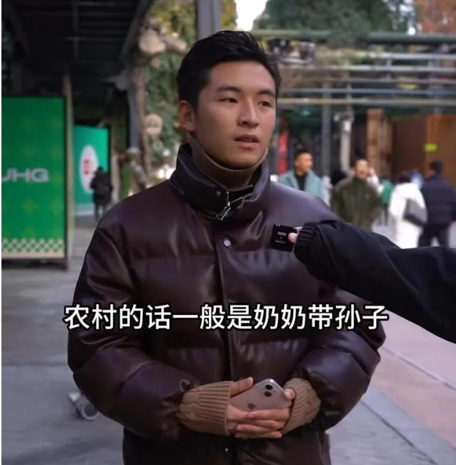 就像前面街头采访的那位来自农村小伙子说,农村的话,都是奶奶带娃,这应该是他从小看到的身边的例子。