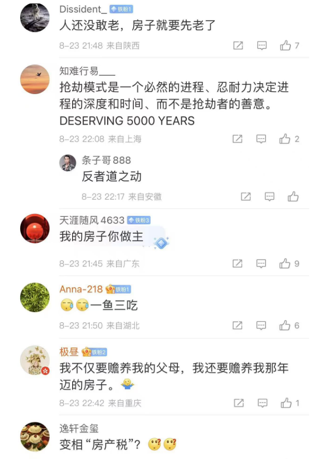 有网友则发出这样的感慨,以后自己的私产不再是属于自己有了,而是成为可割肉的对象。