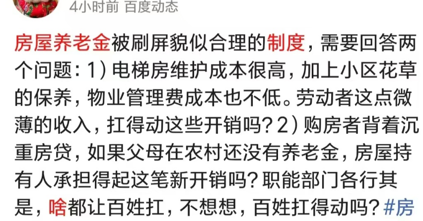 不管是内幕也好,还是分析也罢,或者是评论,反正网友们对这次的房屋养老金基本上是以非议为主流,没有一个愿意去正面评价的,这就是我在网络上看到的民意。