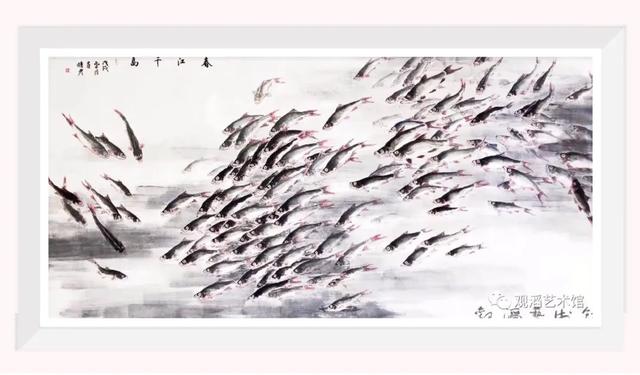 习俗以"水"为财,而鱼又有年年有余的吉祥喻意,鱼游于水中,财源滚滚,广为聚富,鲤鱼又有跃门的传说,所以有鱼戏水,家宅得福,如此好寓意的画作,家居装饰不能缺席。此类作品主要有双鱼嬉水、九鱼戏水、众鱼戏水图等,最适宜摆客厅正门45度对角钱的"财位"上,取"招财"喻意。