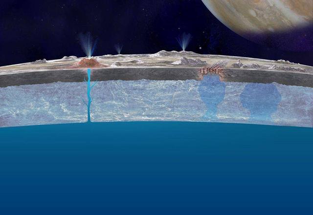 目前,我们太阳系中最有希望存在液态水的宿主是木卫二(木卫二是木星的一颗大卫星)和土卫二(土卫二是土星系统中的一颗动态卫星)。有迹象表明,这两颗卫星的冰壳下面都有水。原因是它们巨大的气态行星宿主潮汐引起的水热活动,导致冰壳一直处于液态。同时,它们也有间歇泉喷发的迹象,即液态水从下方向上喷出,并越过地表。