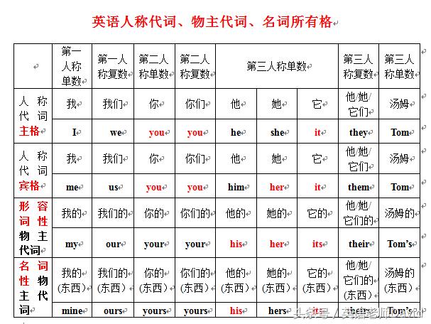 英语人称代词、物主代词、名词所有格
