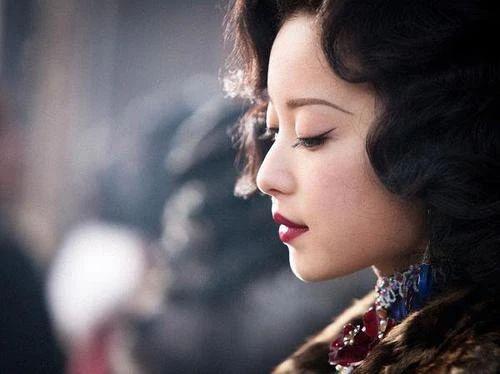 早期刚刚出道时的她,在出演《金陵十三钗》中是细细的弯眉,眉峰柔和、眉尾下落,整个人看起来清秀且温婉。