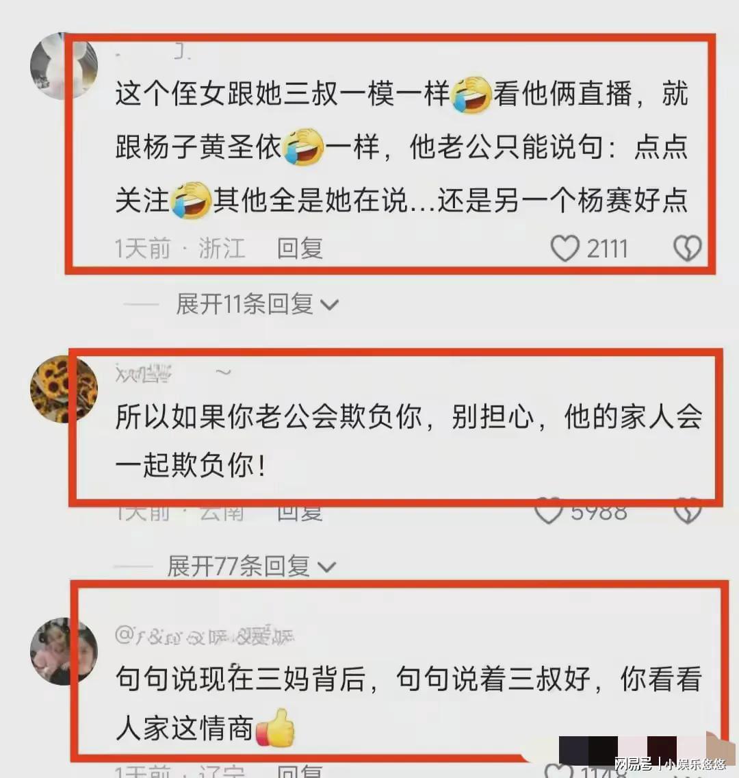 除了杨子女儿,杨子的侄女也在直播中谈起了黄圣依。