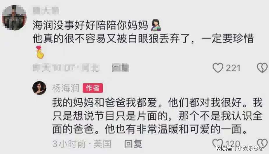 杨子女儿留言表示,她的父亲很好,节目是片面的。