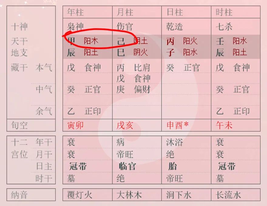 那甲己相合是否形成羁绊了呢?答案是肯定的。甲己相合,此时的甲和己相合,互相形成羁绊,如时干为正官,则不以“伤官见官”论。