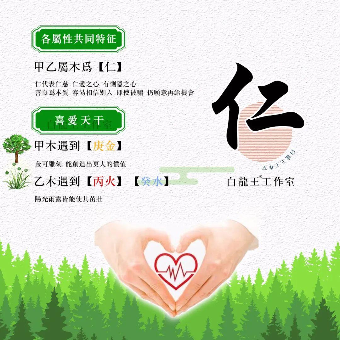 阳木,巨木,具有:性直、忠厚、果断、阳刚、骨气、野心驰聘、生发、向上等特性,喜雕琢和修饰,一般不容易从弱,标准的吃软不吃硬,你越硬他越硬,即便是八字偏弱,也难以为从弱格,因为甲木有领导特质,也比较能聚拢周边的人气,享受舞台,在意身边眼光,请用鼓励取代责备,但看似自尊心强大,其实内心只有柔弱小树苗,真的有求于他眼泪会先掉下来;喜欢辛金来克制,癸水滋润,八字中只要有火,甲木就可以生火。