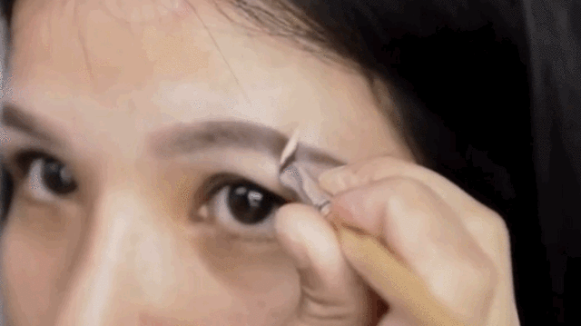 然后用修眉刀小心的在剪过的位置刮走多余的扎毛,修剪出清晰的断眉形状。