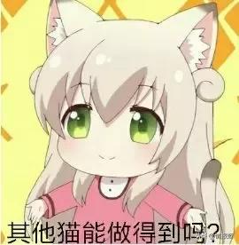 这张猫咪表情包曾经火爆各大聊天群,蠢萌又可爱的猫娘和百搭的台词,一经出现就迅速占领了各大Q群微信群。这个表情包系列就出自两分钟泡面番——《猫咪日常》(“两个呆子”)。这部动漫讲述了爱猫但不擅长和人交往的宅女友子和她养的三只不同性格猫娘的故事。萌是本作的最大看点,虽然2分钟时间可能连水都烧不开,但是制作方真的是把不同性格猫咪的可爱展现的淋漓尽致呀!至于为什么叫两个呆子,是番名的日文空耳啦~什么,你还没有她们的表情包?快去整一个!