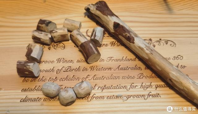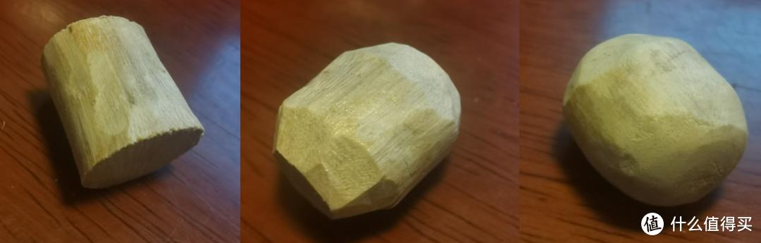 原始木块——用刀切一下——砂纸磨的圆润一点,珠子就做完了