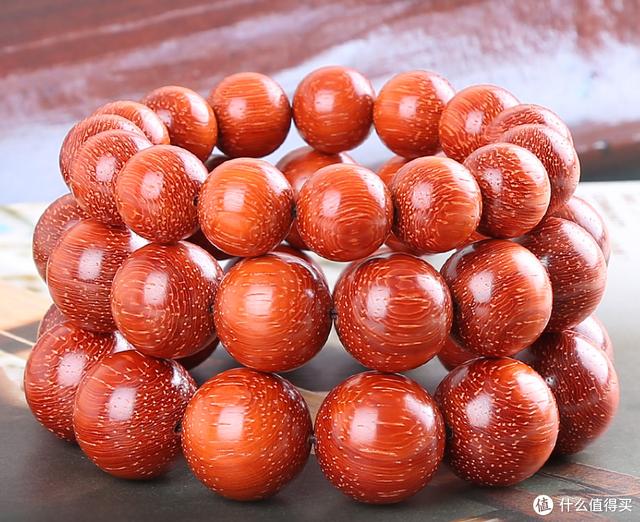 4、酸枝木。酸枝又分为很多,比如大红酸枝,白酸枝等等,俗称的酸枝一般指老挝大红酸枝,是最正统的。名字虽然听起来很路人,但实际上这个挺贵,明清家具中算是非常核心的一种材料,与黄花梨、紫檀并列。当然,因为做珠子用不到什么太大块的料子,所以珠子的价格也算是能承受。这个的缺点就是假货比较多,经常会用杂牌酸枝冒充老挝大红酸枝。