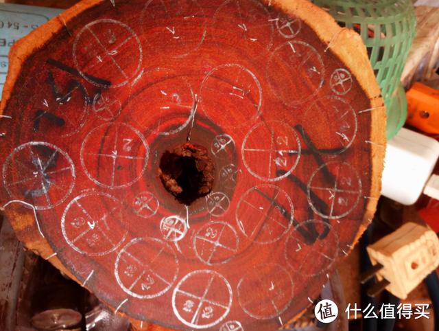 用来加工珠子的紫檀饼料,一般中间都有空洞,最外层的是白皮